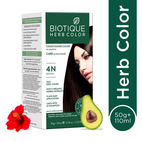 Biotique Herbal color Hair Color 4N - Brown (50gm+110ml)
