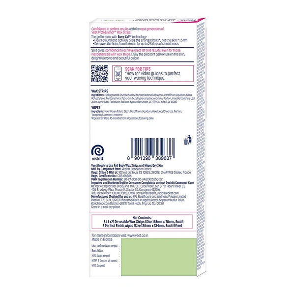 Veet Professional Waxing Strips Kit For Dry Skin (8PCS)