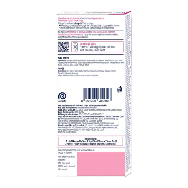 Veet Professional Waxing Strips Kit For Normal Skin (8 wax Strips)